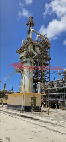 The FCCU is a side by side reactor / regenerator design. The reactor is fitted with UOP’s proprietary riser termination hardware and close coupled cyclones. The riser also features UOP’s lift gas technology. The regenerator is a combustor design and is fitted with two back mix catalyst coolers to enable effective residue cracking capability. Reactor / Regenerator / Flue Gas / Main Fractionator Sections Feed is pumped from the feed drum through the preheat exchanger train where Main Fractionator product and pump around streams heat up the feed. The heated feed is sprayed into the riser reactor through the injector nozzles where it is mixed with lift gas and hot regenerated catalyst. The oil / catalyst mixture flows up the riser with the heavier oils cracking into lighter components. At the riser termination the catalyst and oil are separated through a cyclone system. The oil vapors continue out of the reactor to the Main Fractionator.